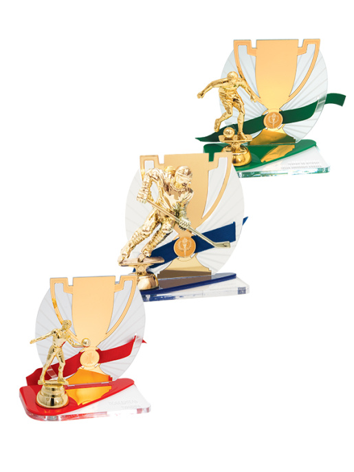 Приз акриловый с фигурой из металлизированного пластика и лентой под вкладыш диам. 25 мм.