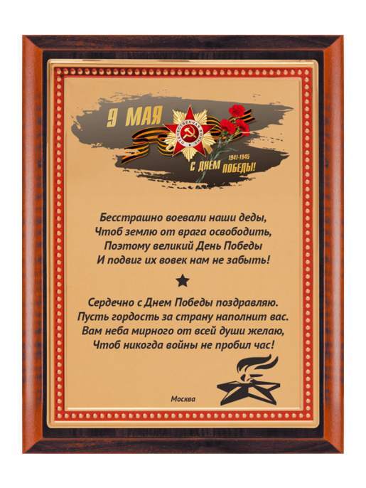 Плакетка на основе из прессованного дерева с фигурным металлическим шильдом. Полноцветное нанесение - сублимация.