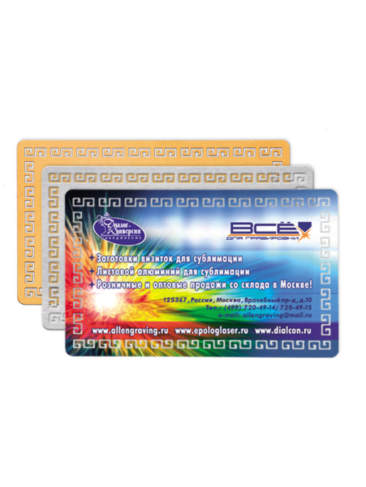 Визитка, дисконтная карта. Материал - алюминий 0,22 мм. Печать с одной стороны. От 10 шт., от 3 дней.